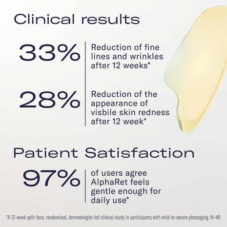 AlphaRet is a clinically proven retinoid with 10 years of results. Designed for visible overnight skin rejuvenation with little-to-no irritation often experienced with retinols and other retinoid products, AlphaRet is formulated for all skin types.